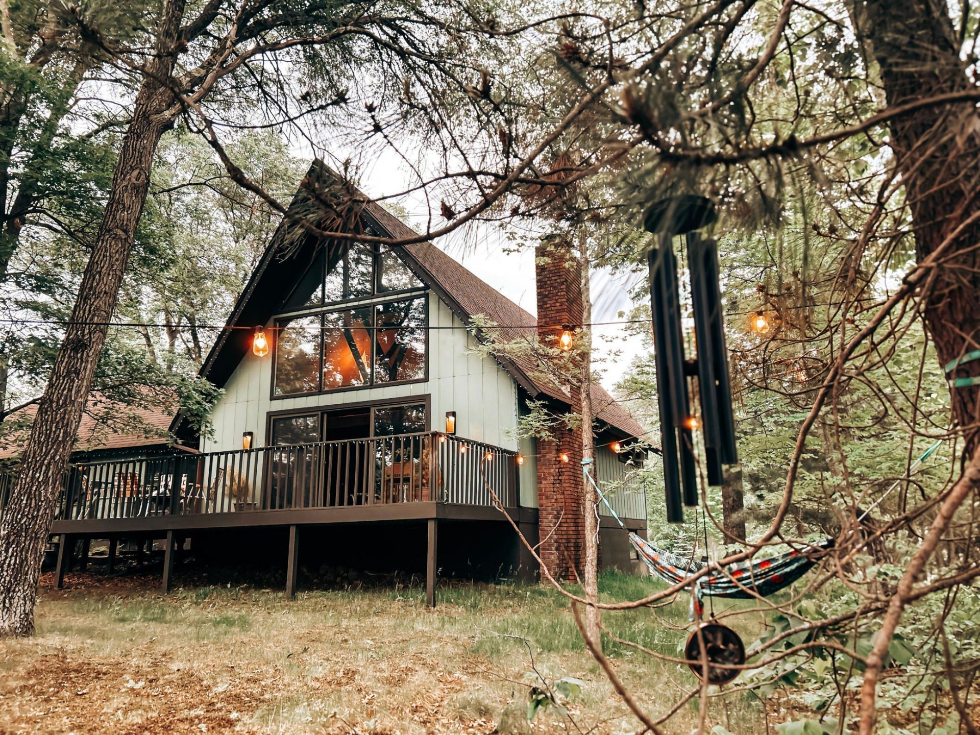Welcome to Camp Green Pine, a 4-bedroom, 3-bath cabin offering 3,500 sq ft of midcentury modern style with a nostalgic 70s camp feel. Set on a private 1-acre double lot in Voyager Village, this home is designed for gathering, with multiple indoor and outdoor living spaces, three wood-burning fireplaces, a detached artist studio, and a detached 3-car garage featuring a separate workspace with additional wood stove. Thoughtful updates throughout honor its original 1970s character, elevated by designer touches. The entire property is carefully curated to help you reconnect with nature including the spacious bonfire area as well as a cozy screen porch for rainy days. Camp Green Pine is offered fully furnished, creating a seamless, turnkey experience for its next owners. Enjoy Voyager Village amenities including an 18-hole golf course, private lakes, clubhouse dining, indoor pool and sauna, tennis courts, a fitness center, dog park, and year-round hiking, biking, snowmobile, and ski trails. Close to West Cadotte beach and Shoal Lake landing. Welcome back to camp.