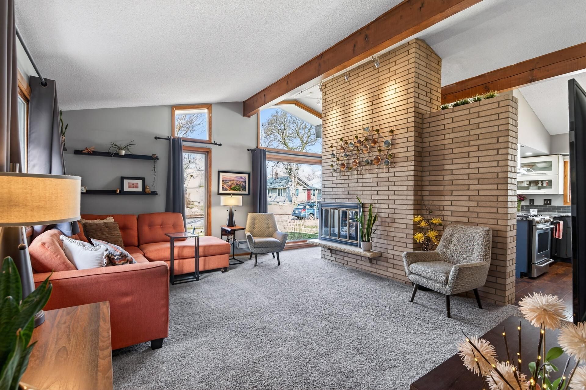 A rare find that truly stands out?this 1966 mid-century modern home brings serious style and is the kind of property buyers wait for. Only available due to a transfer, this one is sure to draw attention quickly. Clean lines, vaulted ceilings with exposed beams, and oversized windows define the main living space, creating a light-filled, architectural feel that is hard to replicate. The 3-sided brick, wood-burning fireplace anchors both the living and dining rooms, while the original dining room light fixture adds a perfect touch of vintage character. The remodeled kitchen blends modern updates with great design, featuring granite countertops, stainless steel appliances, and a statement vent hood, all open to the dining area for easy flow. Hardwood floors run through much of the home, and all three bedrooms are conveniently located on the same level. The primary suite offers its own 3/4 ensuite bath with tiled shower, cork floors, and updated fixtures, while both the primary and secondary bedrooms feature closets with impressive 8' doors.The lower level expands the living space with a huge family room centered around a second brick, wood-burning fireplace, plus a brand new 3/4 bathroom with tiled shower and floors. There's also a large laundry room (complete with laundry chute), a workshop, and a generous storage area?with the potential to add a 4th bedroom by installing an egress window.Outside, enjoy a fully fenced backyard with mature perennials, raised garden beds, and a deck for relaxing or entertaining. A 2-car detached garage plus additional parking space adds convenience.The location adds even more appeal?just minutes from local favorites like Dancing Bear Chocolate, Get Down Coffee, and North Market, plus quick access to Northeast Minneapolis known for its breweries, restaurants, and iconic character. You're also close to the North Loop with hotspots like Red Cow, Red Rabbit, and Monte Carlo, along with easy access to Downtown Minneapolis for concerts, sporting events, comedy clubs, and endless dining options.If you've been waiting for something with personality, character, and true mid-century modern appeal, this is it?rare, memorable, and ready to sell quickly.