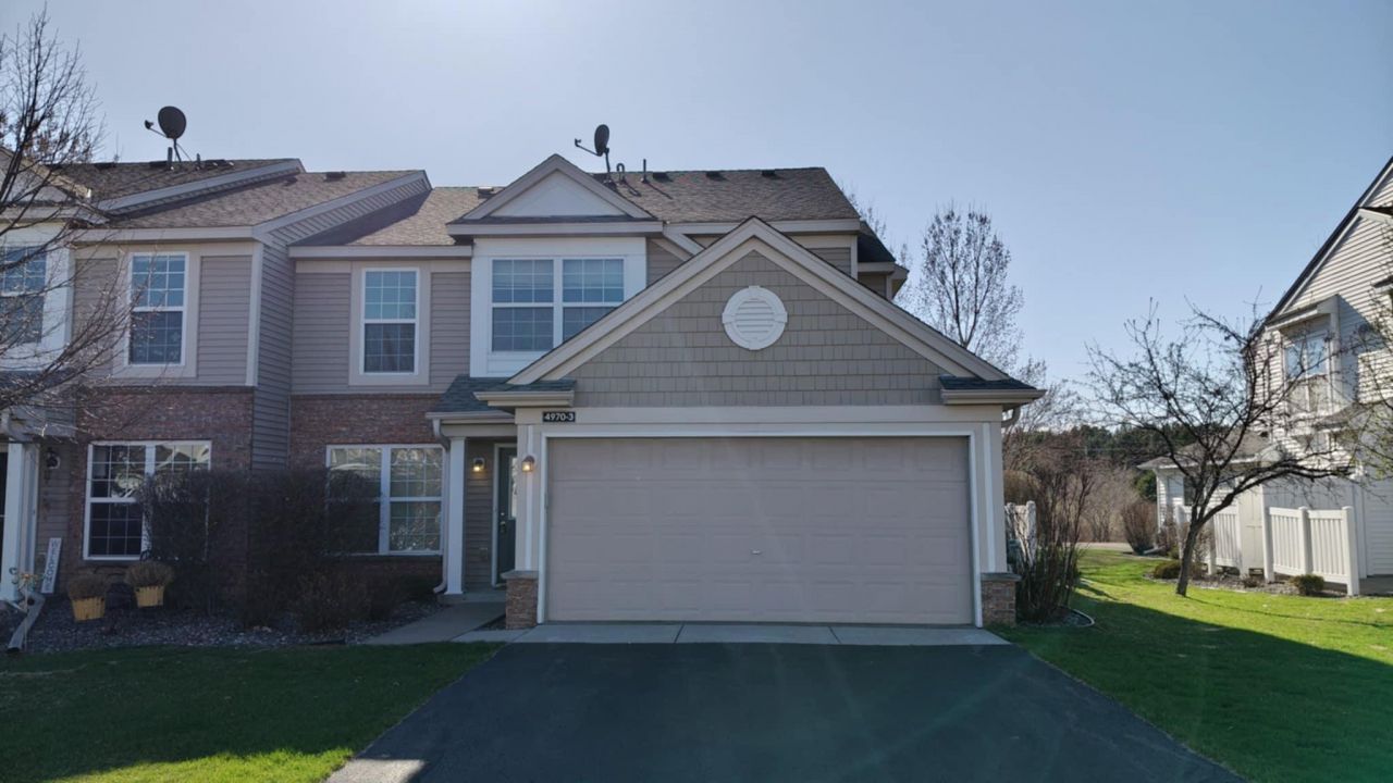 Welcome home to 4970 149th Street N #3 in the highly sought-after Waters Edge community of Hugo. This well-maintained 2-bedroom, 2-bathroom, 2-story townhome with an attached 2-car garage offers comfortable and convenient living. The main level features an open living room and a spacious eat-in kitchen with ample cabinet and counter space, plus a convenient half bath. Upstairs, you'll find two generously sized bedrooms, including a vaulted primary suite with a walk-in closet and walk-through access to the full bathroom. The upper level also includes a versatile loft?perfect for a home office or reading nook?and upper-level laundry for added convenience. Enjoy peaceful outdoor time on the patio overlooking the side yard. As a resident of Waters Edge, you'll have access to fantastic amenities including a community pool, clubhouse, fitness center, playground, and scenic walking trails. Located near parks, shopping, and major roadways, this move-in ready Hugo townhome is a must-see!