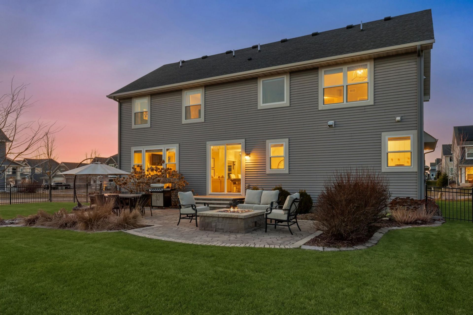 Set on a premium corner lot in Woodbury's popular Summerlin development, this beautifully designed home offers standout curb appeal and exceptional indoor-outdoor living. The light and bright interior features a spacious kitchen with stainless steel appliances and stunning subzero refrigerator, quartz countertops, custom designed walk-in pantry and after-school study nook. Seamless transition between the in-formal dining room and living room with cozy gas burning fireplace. Sliding patio door opens up to incredible backyard living with paver patio, built-in fire pit and fully fenced-in yard. Upstairs you'll find 4 bedrooms with great room loft and upper-level laundry. The spacious primary bedroom features large walk-in closet and bath with dual sinks, soaking tub and walk-in shower. Unfinished basement currently used for raising the next generation of Minnesota hockey players provides an instant equity opportunity as well as the flexibility to create your own space. 3 car attached garage. Country Joe Homes built. Convenient Woodbury location with easy access to shopping, restaurants, parks and I-94. Highly desired East Ridge High School!
