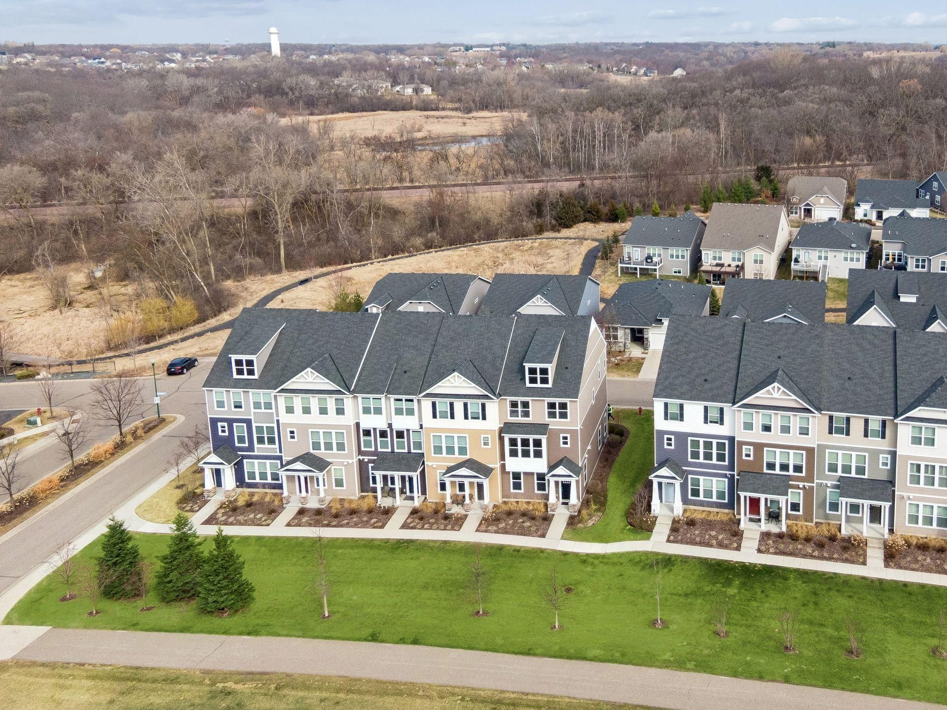 End-unit townhome with great views of wetlands and walking trails. Home features spacious entryway for guests with extra parking just steps away from home. Open and spacious main floor features dynamite chef's kitchen with beautiful white cabinetry, huge island, gas cooktop, vent hood and wall oven. Lots of space to entertain, but also easy daily living. Kitchen is open to large dining room with space for huge table or a smaller table then a hutch or lovely buffet. The whole main floor flows together effortlessly and is flooded with pretty natural light. Notice the very large living room which will accommodate many different seating arrangements. Walk out to your deck which overlooks the wooded, wetland area. Deck was sanded and refinished in summer 2024. Neutral, convenient powder room is tucked away on main floor. Upstairs you'll find the primary suite with backyard, wetland views. Spacious primary bedroom flows into private, primary bathroom with two sinks, extra linen closet and lovely walk-in closet with organization system. Down the hallway you'll find two nicely-sized junior bedrooms. A junior bathroom is just steps away from each junior bedroom. Upstairs is completed with helpful laundry - no need to carry laundry up and down the stairs - wonderful! Your lower level features a large family room with glass-front French doors - this hardworking room can be an office, playroom, family room, or all three things! Wonderful access to miles of walking and biking trails. Across the side street from McKnight Park with open fields, play area and covered picnic area. You are less than 2 miles from Costco, Target, Cub Foods, Home Depot and so many restaurants and coffee options. Easy access to commuting roads. Great schools and school choice.