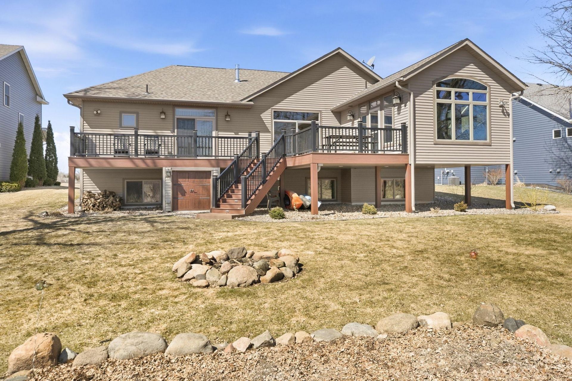 Welcome to this stunning 5 bed, 4 bath executive-style rambler offering the perfect blend of luxury, comfort, and functionality. The main level features a beautiful sun room flooded with natural light, featuring expansive windows that showcase serene backyard views?perfect for morning coffee, reading, or simply enjoying the outdoors from indoors. Large patio sliding glass doors open to a huge maintenance-free deck, ideal for entertaining or relaxing while overlooking a private backyard with a peaceful nature area and no immediate backyard neighbors. The expansive primary suite is a true retreat with double closets, vaulted ceiling, and a private ensuite featuring a large soaking tub and duel vanities. The primary bedroom also offers its own private access to the deck, creating a seamless indoor-outdoor retreat. The fully finished basement is ideal for entertaining, boasting a large family room with a second fireplace, a wet bar with fridge, and ample space for a pool table or game area. Enjoy a functional and stylish garage with epoxy-coated floors, built in shelving, and an electric vehicle charging station. Additional features you'll love include maintenance free siding, abundant storage, beautifully updated flooring throughout the main and lower levels, ample natural light, spacious closets, supplemental in-floor heating in the basement, and a convenient tuck-under storage shed beneath the backyard deck. Located in the highly desirable Sartell school district and just minutes from parks and walking trails, this exceptional home combines upscale features with an unbeatable location.